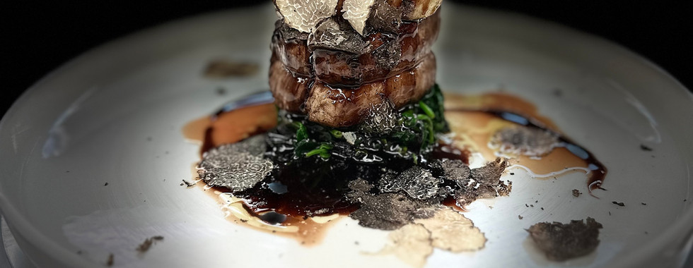 Place the seared foie gras on top of the fillet,and add truffle slices.